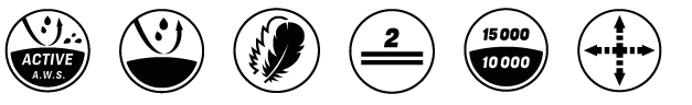 - Dobladillo y puños ajustables con puños interiores con orificios para pulgares.