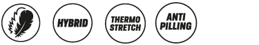 - Tejido exterior: 80 % poliéster, 14 % viscosa, 6 % elastano.